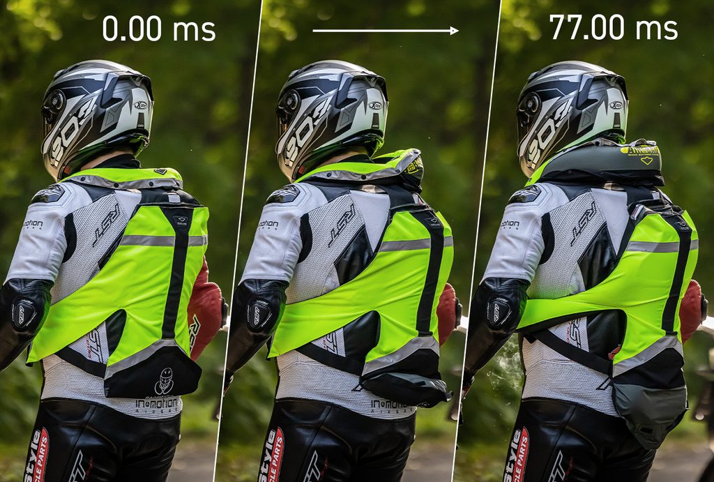 Spouštěcí mechanismus vesty na hrudníku je spojen s motocyklem pružným karbon-kevlarovým lankem, umožňujícím jezdci neomezený pohyb během jízdy a nasednutí a sesednutí z motocyklu. Lanko se uchycuje k rámu motocyklu pod sedlem, u spolujezdce se postupuje stejně jako u řidiče - pouze s rozdílem uchycení pod sedlem v místě spolujezdce.