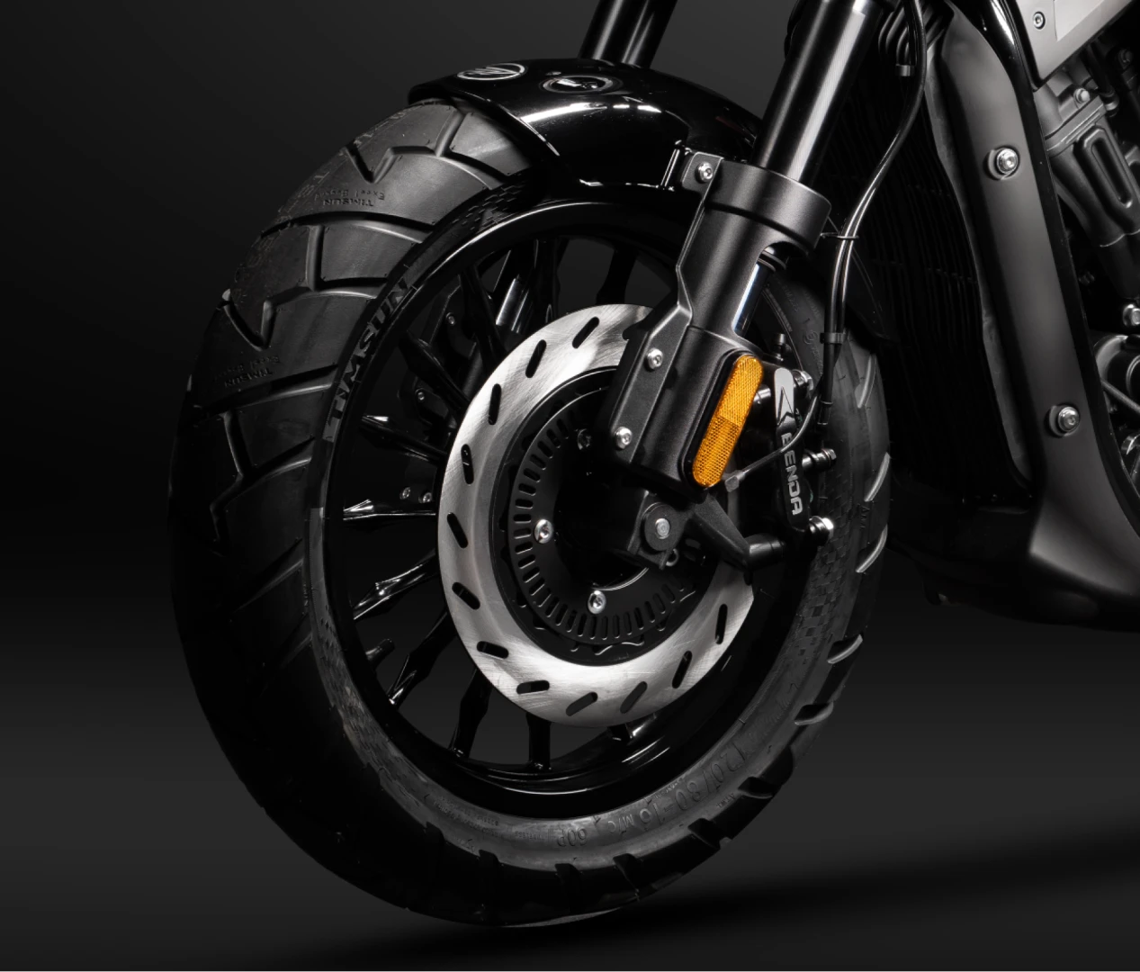 Model V302 C je vybaven dvoukanálovou technologií ABS na předních a zadních kotoučových brzdách pro bezpečnější zastavení.