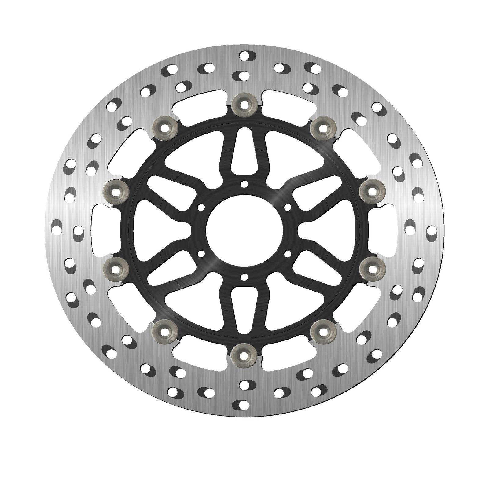 Barva brzdné plochy je výsledkem speciálního tepelného zpracování, které dodává oceli toto charakteristické duhové zbarvení, díky němuž bude váš stroj vynikat mezi ostatními. Chladící otvory nejsou orientovány vertikálně, ale horizontálně a jsou uspořádány ve skupinách po třech v každém směru. Ventilační otvory společně se speciálním tepelným zpracováním zabraňují přehřátí materiálu, které by mohlo vést k deformaci kotouče.