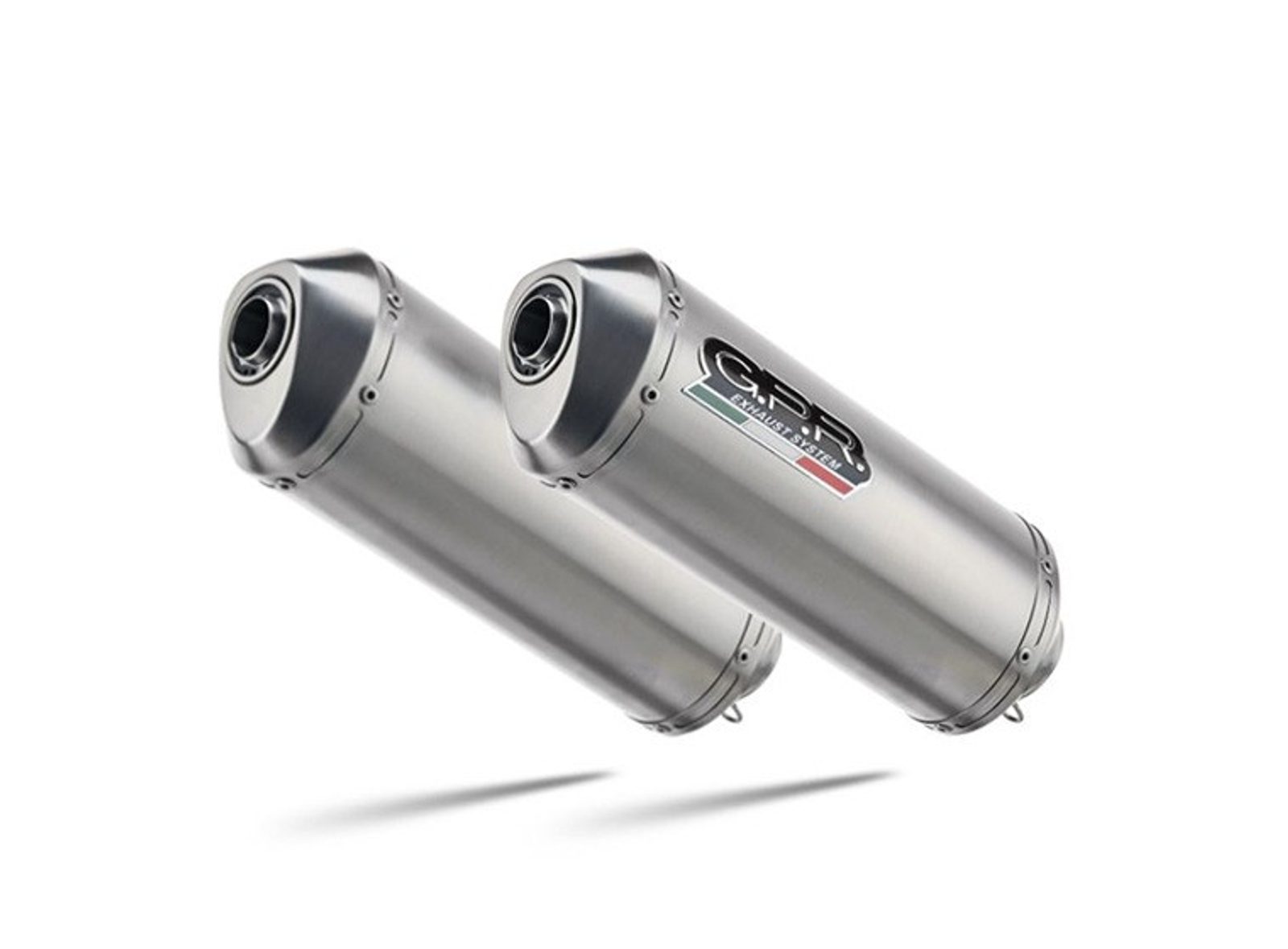 Dvojitá koncovka výfuku Slip-on GPR SATINOX CAT.47.SAT Broušená nerezová ocel zahrnuje odnímatelné db killery, spojovací svody a katalyzátory