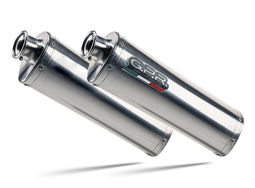 Dvojitá koncovka výfuku Slip-on GPR TRIOVAL A.24.TRI Leštěná nerezová ocel zahrnuje odnímatelné dB killery a spojovací svody