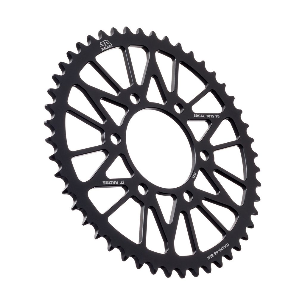 JT používá výhradně ty nejkvalitnější materiály. Pro závodní lehké rozety je to hliníková slitina letecké kvality 7075-T6, pro přední pastorky extrémně pevná slitina SCM420 (chrom-molybdenová ocel) a pro zadní ocelové rozety jako jediný výrobce používá ultra odolnou uhlíkovou ocel C49.