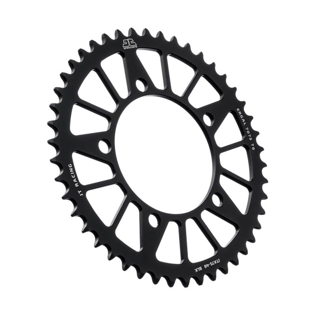 JT používá výhradně ty nejkvalitnější materiály. Pro závodní lehké rozety je to hliníková slitina letecké kvality 7075-T6, pro přední pastorky extrémně pevná slitina SCM420 (chrom-molybdenová ocel) a pro zadní ocelové rozety jako jediný výrobce používá ultra odolnou uhlíkovou ocel C49.