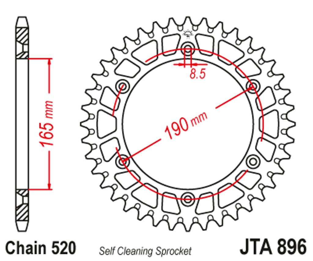 Hliníková řetězová rozeta JT JTA 896-50BLK 50 zubů, 520 černá