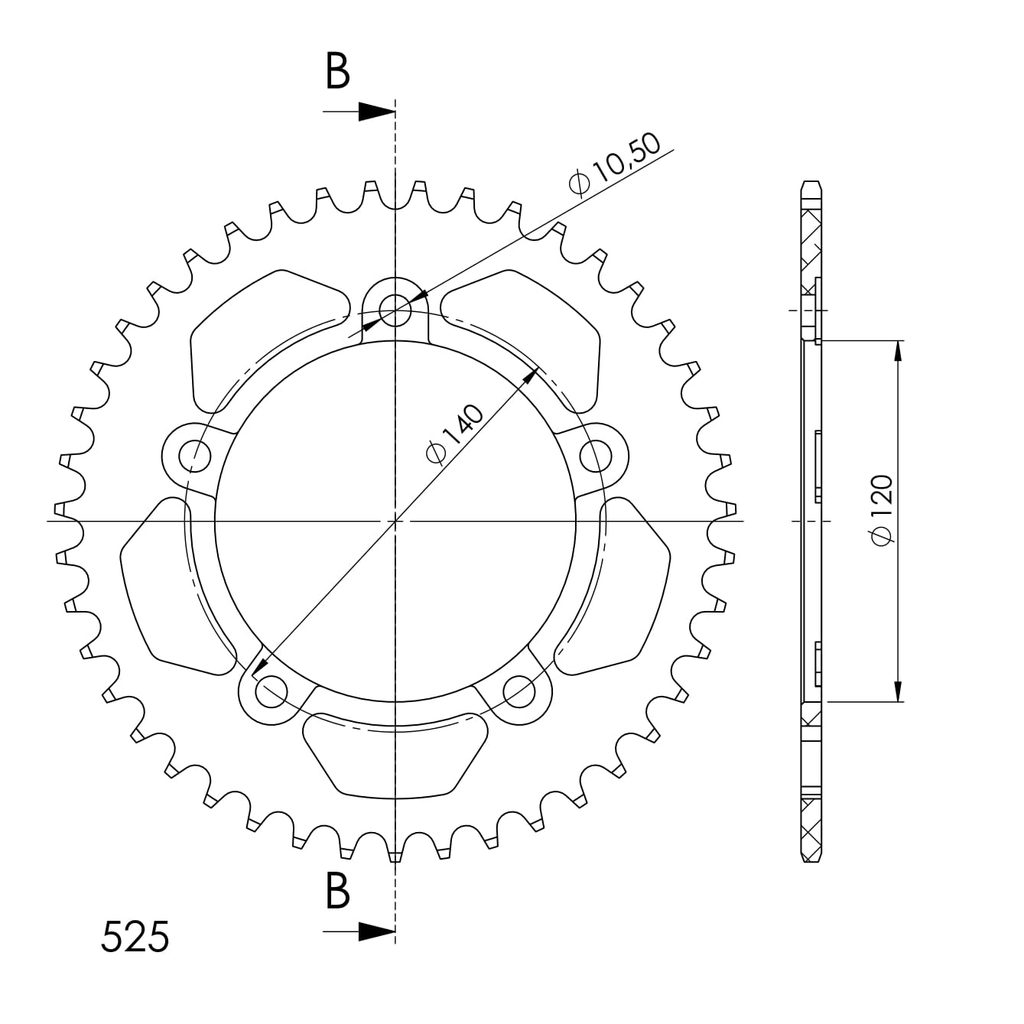 Hliníková řetězová rozeta SUPERSPROX RAL-1792:44-BLK černý 44 zubů, 525