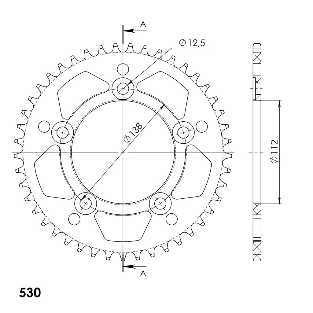 Hliníková řetězová rozeta SUPERSPROX RAL-302:45-BLK černý 45 zubů, 530