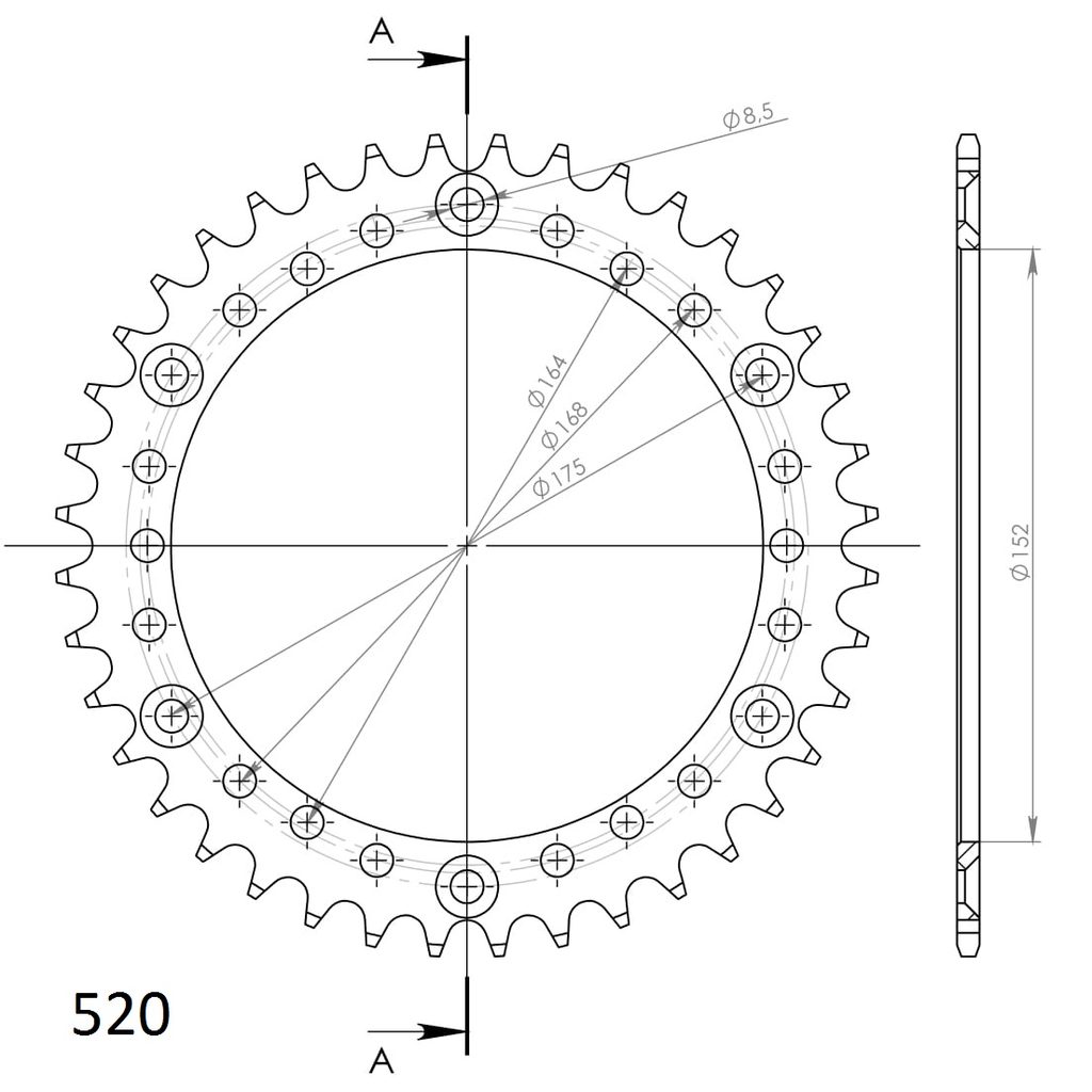 Rozeta nejvyšší kvality z materiálu 7075-T6 s pevnějšími zuby pro prodloužení životnosti řetězové sady. Více informací
