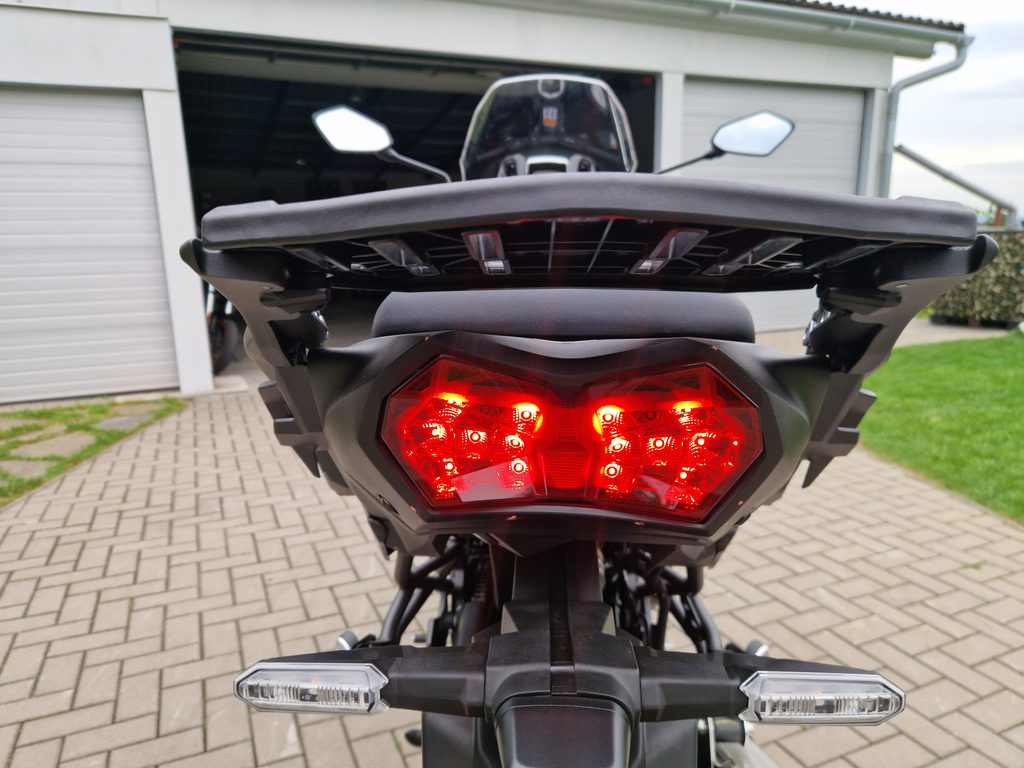 Od dvojitých předních světlometů přes kompaktní LED blinkry až po zadní LED koncové světlo a spolu s LED žárovku osvětlující registrační značku nabízí Versys 1100 S kompletní balíček LED osvětlení.