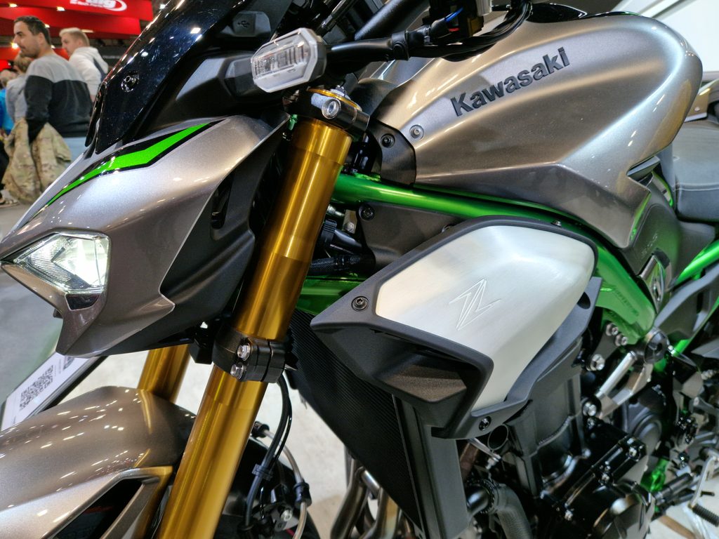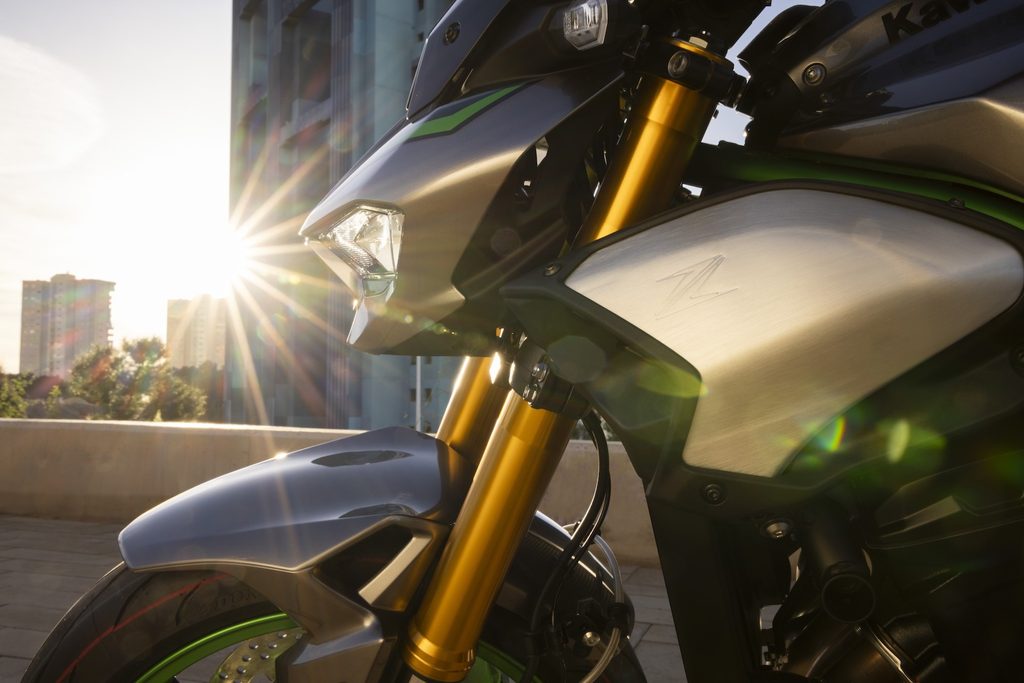 Hlavní doménou ostřeji vyhlížející nové přední masky jsou nové ostřejší a kompaktnější světlomety, které byly navrženy tak, aby byly nedílnou součástí charakteru Sugomi Zedů od Kawasaki. Umožňují dosáhnout elegantnější přední části, vytvářejí kompaktní, agresivně vypadající pohled zepředu, který mají fanoušci Supernakedů Z tak rádi. Přední světlomety jsou obklopeny černým obložením, které vypadá jako oční stíny, což zvýrazňuje agresivní vzhled přední masky.