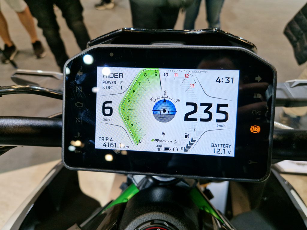 U motocyklů Kawasaki může být na přístrojovém panelu zobrazena i navigace "krok po kroku", což umožňuje jezdci vidět, kde by měl příště odbočit a hned kontrolovat i aktuální jízdní údaje. Kromě stávajících funkcí, jako je možnost zaznamenávat data z Vašich jízd a sdílet je s přáteli, nová aplikace pro chytré telefony „RIDEOLOGY THE APP“ nyní nabízí jezdcům možnost ovládat tuto aplikaci hlasovými příkazy*, což umožňuje upravit si nastavení motocyklu a další volby provést pohodlně hlasovým ovládáním.