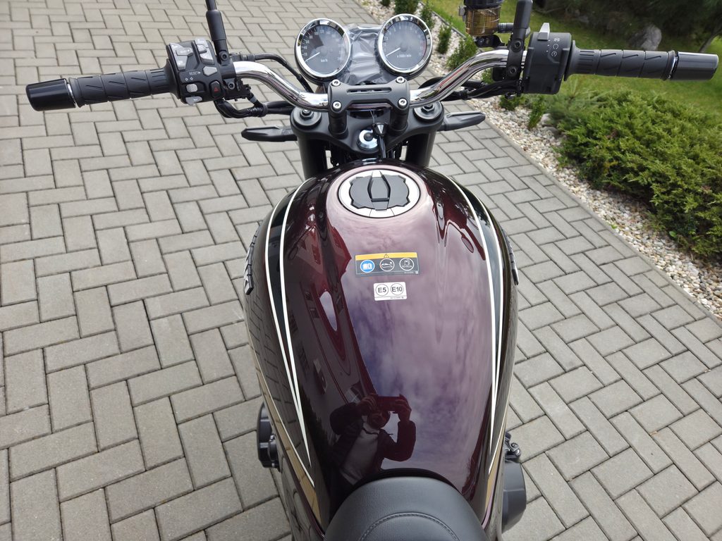 Elegantně tvarovaná palivová nádrž ve tvaru slzy je středem designu Z900RS a čerpá inspiraci z ikonického modelu Kawasaki Z1. Zadní část odráží charakteristický design zadní kapotáže Z1 a přispívá k elegantnímu bočnímu profilu, který plynule plyne od sedadla až ke koncovému světlu. Další poctu původní legendě vzdávají detaily, jako je přední kulatý LED světlomet, dvojitý klasický přístrojový panel a oválné zadní LED koncové světlo – to vše je pečlivě vyrobeno tak, aby uctívalo tehdejší nadčasový vzhled původního modelu Z1.