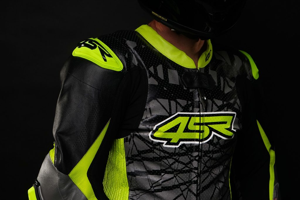 • kombinéza je kompletně vybavena závodními chrániči, včetně hrudního a páteřového chrániče