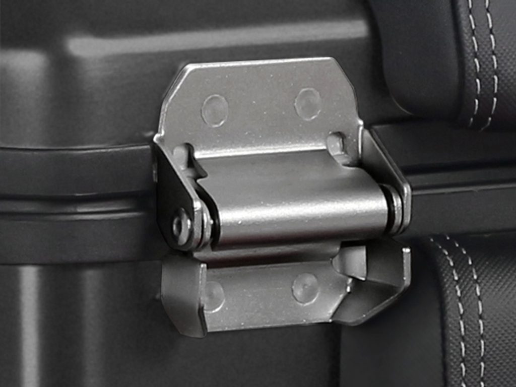 Unikátní integrovaný mechanismus zámku a madla umožňuje jednoduché ovládání jednou rukou a snadnou demontáž z motocyklu.