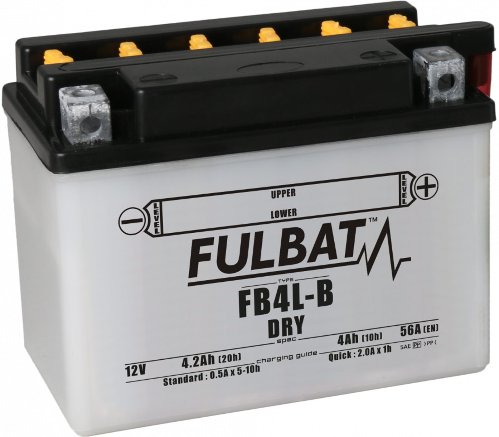 Řada DRY suchých baterií nabízí nesrovnatelný výběr 6V a 12V modelů. Používá se v řadě motorek, hlavně v čínských skútrech. Dodává se suchá, nenaplněná kyselinou, takže ji lze dlouho skladovat, aniž by potřebovala kontrolu či dobíjení. Před prvním použitím je potřeba ji naplnit kyselinou (elektrolytem). Ta je dodávána jako součástí balení, ve správném množství.