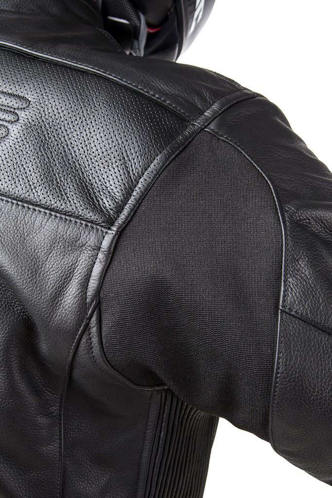 Loketní a ramenní chrániče jsou integrovány stejně tak jako SAS-TEC zádový protektor úrovně 2.