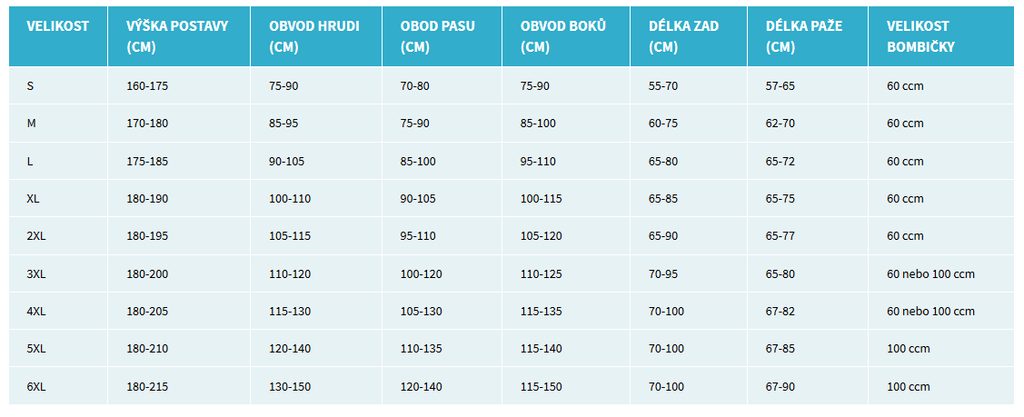 Výběr velikosti dle tabulky je pouze informativní.