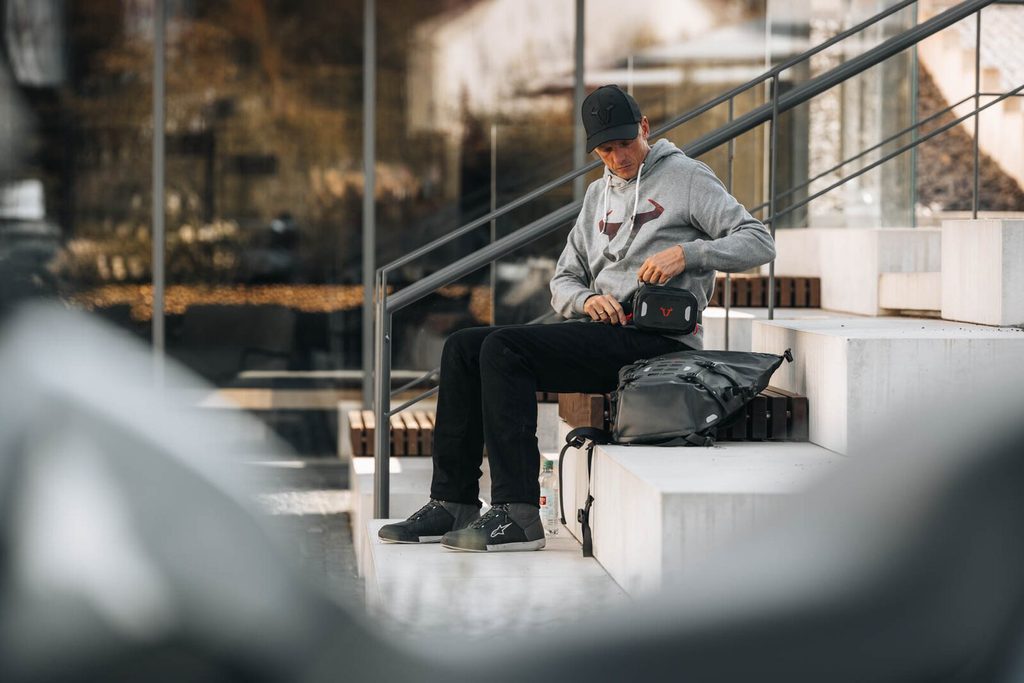 Ledvinka slaví svůj návrat – nyní i u nás! Jako nová edice ve zcela vodotěsném provedení je tato stylová ledvinka tím pravým doplňkem pro každé motocyklové dobrodružství a pro všechny jezdce, kteří mají rádi své věci, jako jsou chytré telefony, peněženky a doklady, díky chytrému umístění během chvilky k dispozici. Tyto nezbytné nezbytnosti jsou bezpečně uloženy v elastické síťované kapse uvnitř tašky. Opasek WP se připevňuje k pase zacvaknutím a lze jej nosit flexibilně uprostřed, na straně nebo otočeným směrem dozadu. Můžete si jej také připevnit na vlastní opasek. Vaše osobní cennosti jsou v Belt WP dobře chráněny – bez ohledu na počasí. Chytré rozložení hmotnosti na celou karoserii zajišťuje nejlepší možný komfort a aerodynamický zážitek z jízdy – pro výlety na motocyklu bez kompromisů.