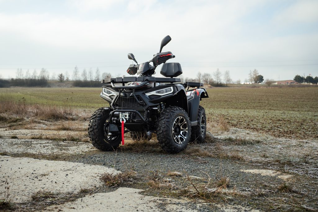 Spolehlivý elektricky ovládaný pohon 4x4 zajišťuje optimální trakci na každém povrchu. Pouhým stiskem tlačítka na řídítkách se výkon motoru přenáší na přední i zadní kola, kdykoli potřebujete zvýšenou sílu záběru. Pro těžkou práci, v prudkých stoupáních, a pro tahání těžkých nákladů máte k dispozici navíc i účinný redukovaný převod do síly.