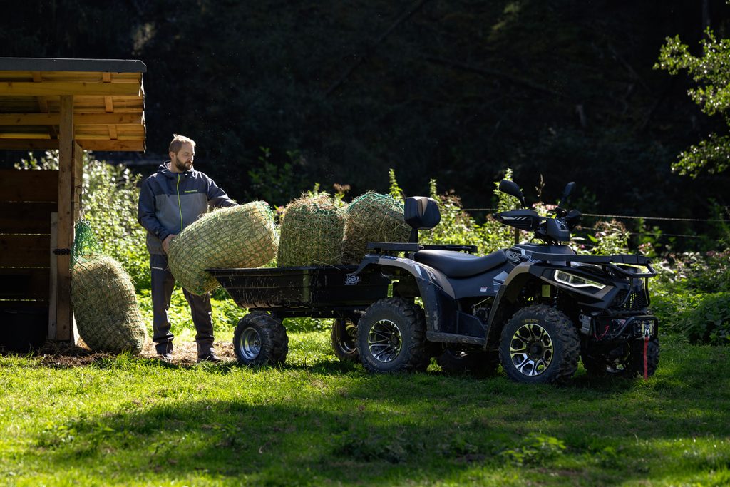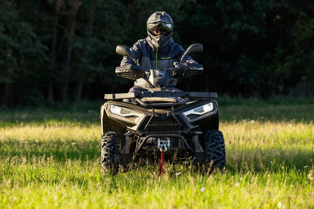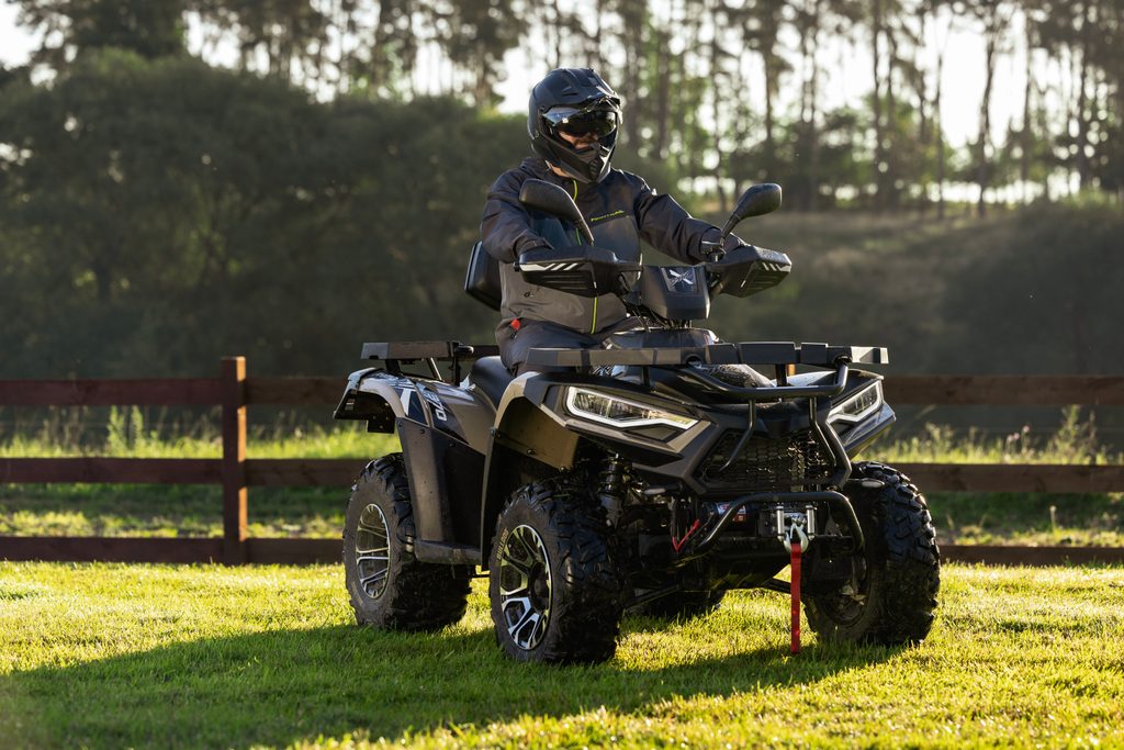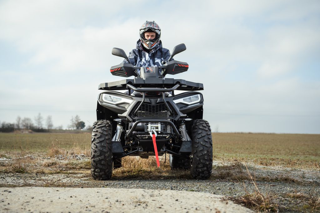 Spolehlivý elektricky ovládaný pohon 4x4 zajišťuje optimální trakci na každém povrchu. Pouhým stiskem tlačítka na řídítkách se výkon motoru přenáší na přední i zadní kola, kdykoli potřebujete zvýšenou sílu záběru. Pro těžkou práci, v prudkých stoupáních, a pro tahání těžkých nákladů máte k dispozici navíc i účinný redukovaný převod do síly.