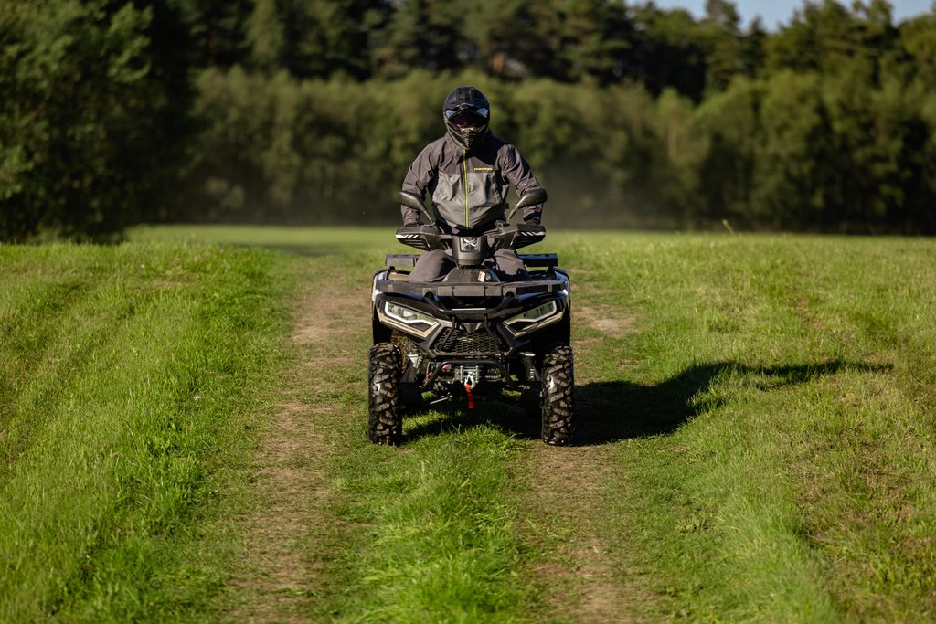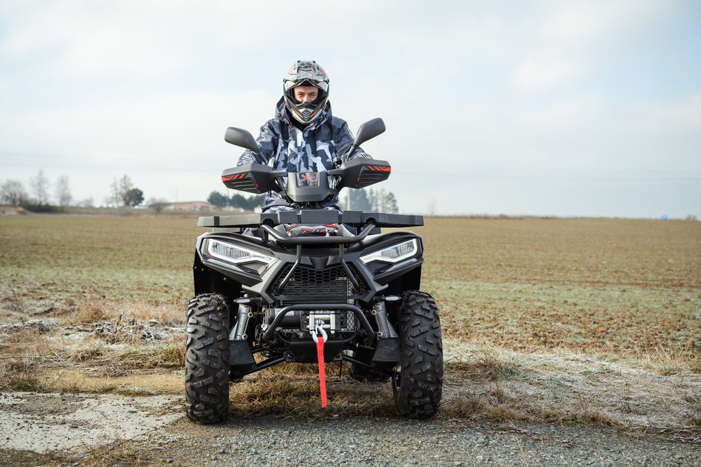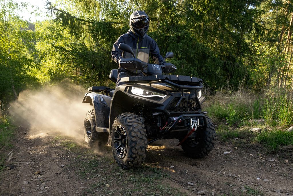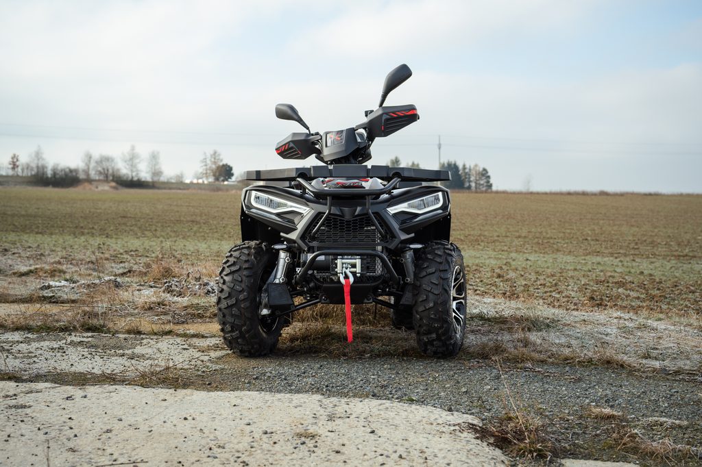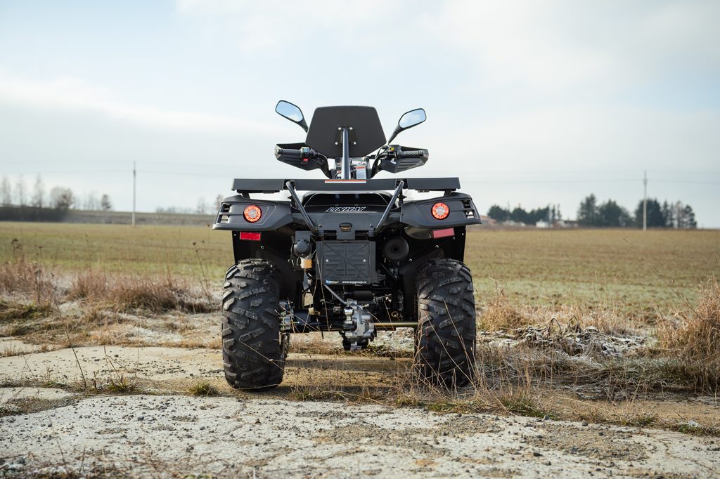 Spolehlivý elektricky ovládaný pohon 4x4 zajišťuje optimální trakci na každém povrchu. Pouhým stiskem tlačítka na řídítkách se výkon motoru přenáší na přední i zadní kola, kdykoli potřebujete zvýšenou sílu záběru. Pro těžkou práci, v prudkých stoupáních, a pro tahání těžkých nákladů máte k dispozici navíc i účinný redukovaný převod do síly.
