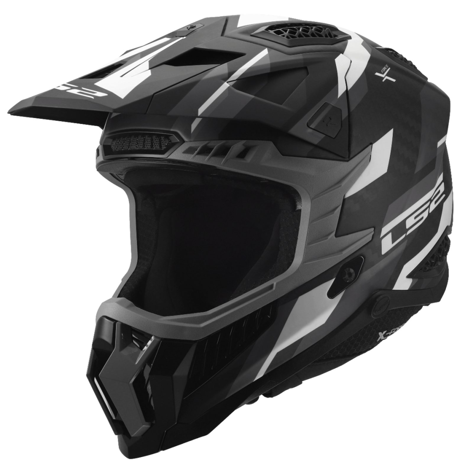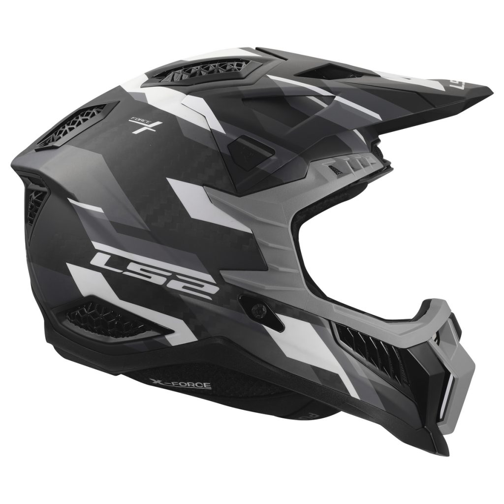 Vrchol nabídky motokrosových a off-roadových helem LS2. Karbonová skořepina přináší nízkou hmotnost a vysokou pevnost. Sluneční štítek je odnímatelný díky rychloupínacímu mechanismu a je možné jej délkově seřizovat. V přepracovaném interiéru je nově picí nástavec pro připojení k drink systému. Nová homologace ECE 22.06. Přilba X-Force Carbon se vyrábí ve dvou provedeních - se skořepinou ze 6K karbonu a se skořepinou z 9K karbonu.