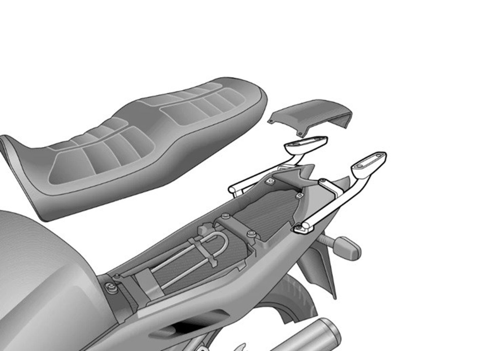 K upevnění vrchního kufru SHAD na motorku stačí namontovat tuto montážní sadu, plotna je vždy součástí kufru (kromě kufrů TR48/TR37).