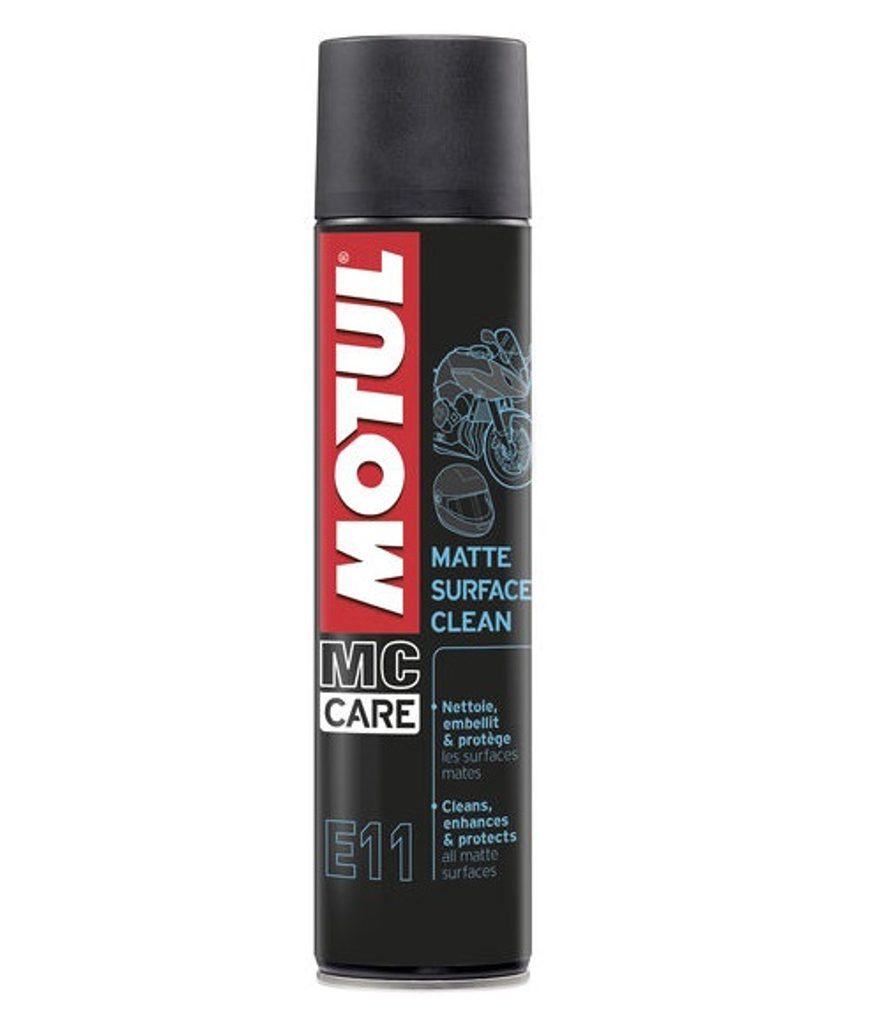 Zevní prostředek pro péči o matné povrchy Motul® MC CARE™ E11 Matte Surface Clean čistí a obnovuje všechny matné plastové a natřené či lakované povrchy, přičemž zanechává hladký, matný a nelepivý povrch. Obsahuje ochranný UV filtr. Používejte bez oplachování.