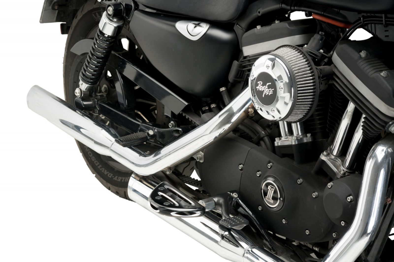 Díky modernímu designu, provedenému v černé a stříbrné barvě, dokonale ladí s estetickou linií tohoto custom modelu.