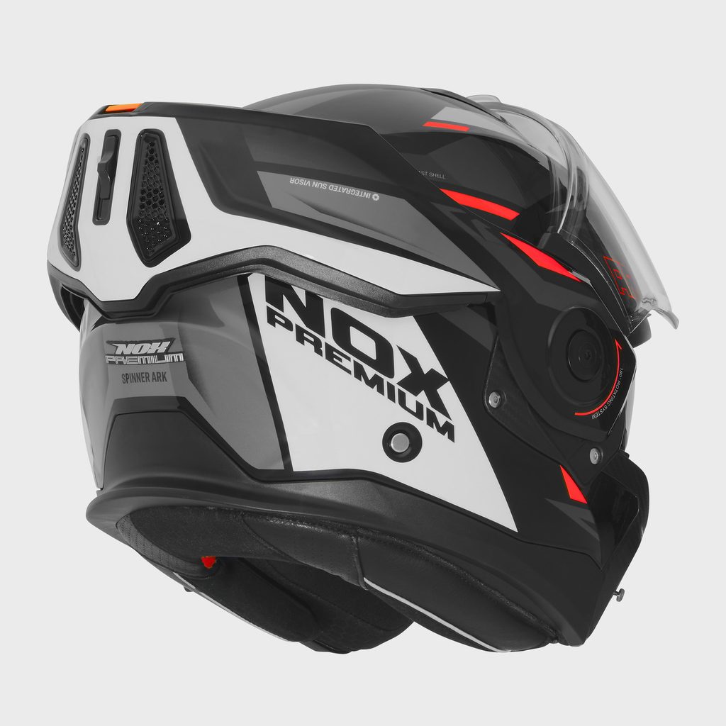 SPINNER je zcela nová výklopná přilba řady NOX PREMIUM s možností překlopení bradové části dozadu.