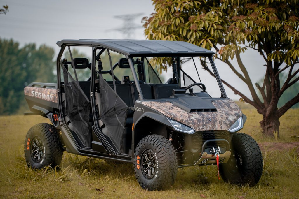Prostorná pracovní UTV až pro 6 osob, čtyřtaktní dvouválec DOHC 1000 cm3 EFI, 105 k, automatická převodovka P/R/N/L/H, elektrický posilovač řízení EPS, pohon 4x4 s uzávěrkou diferenciálu, dvojitá A-ramena vpředu / dvojitá A-ramena se stabilizátorem vzadu, hydraulické tlumiče s progresivními pružinami, sklápěcí korba, elektrický naviják 4500 lbs, tažné zařízení, anatomicky tvarovaná sedadla s hlavovou opěrkou, digitální přístrojová deska, přední, zadní ochranné rámy, 14" hliníkové disky s 27" pneu