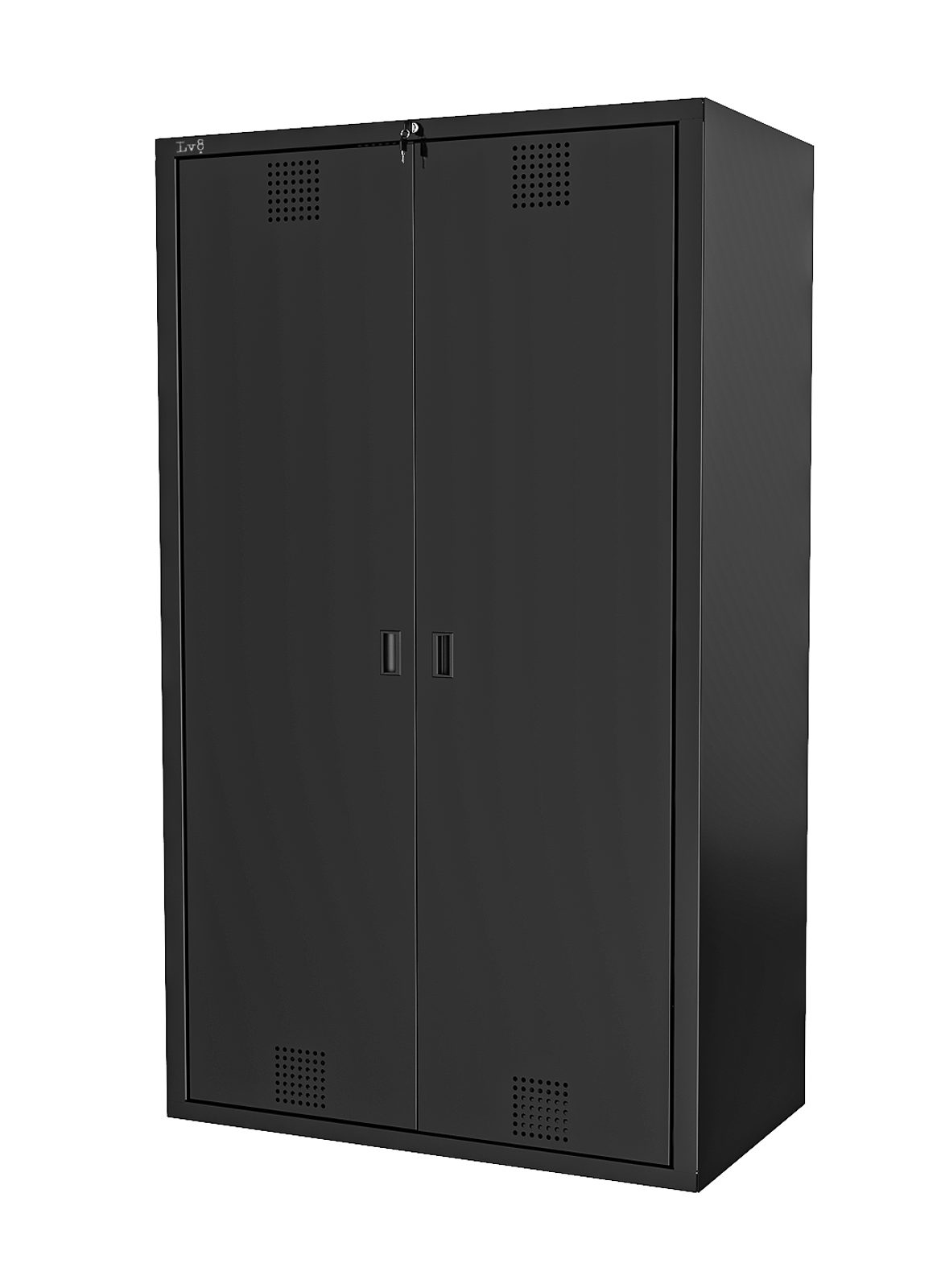 Skříň na skladování oleje vybavená zámkem na klíč, 3 posuvnými a výškově nastavitelnými policemi, sběr oleje LV8 EQA03R černý