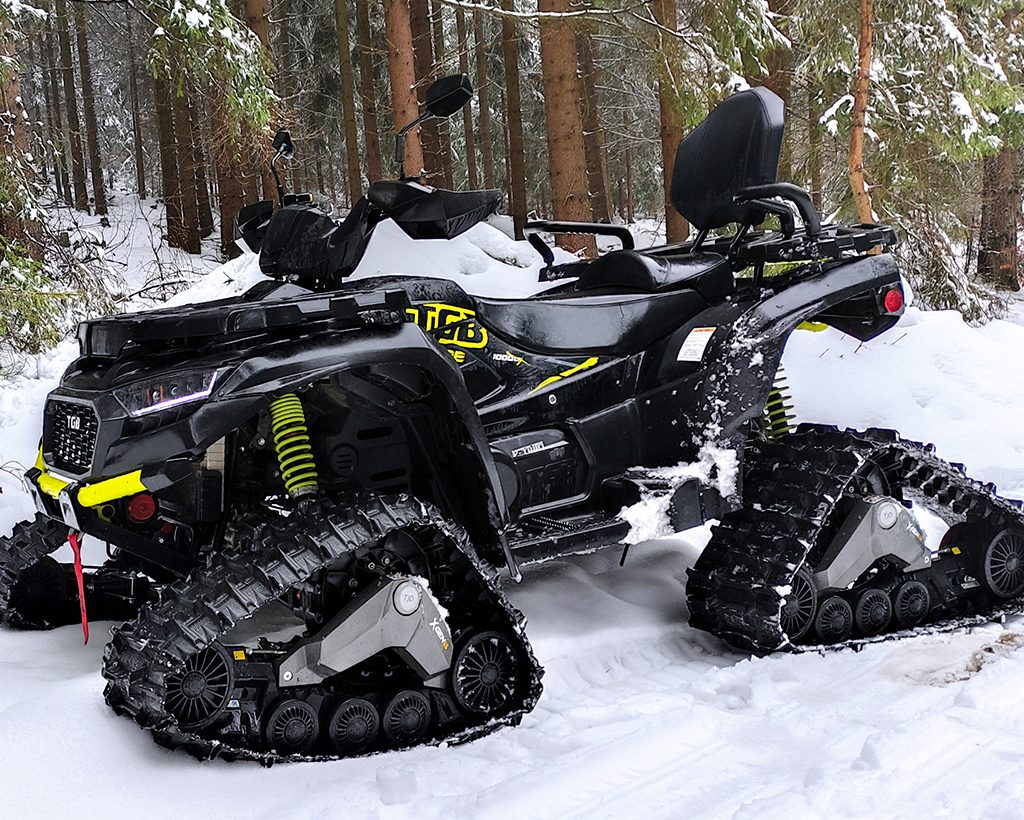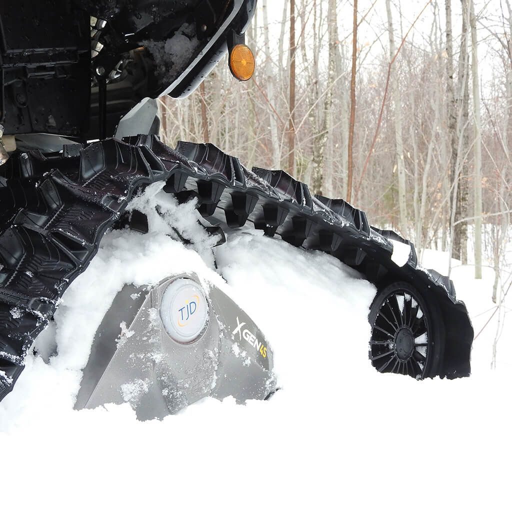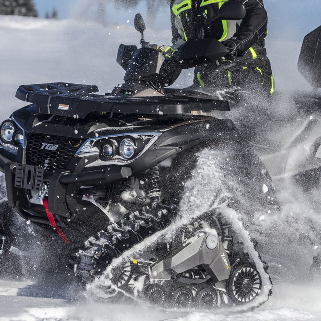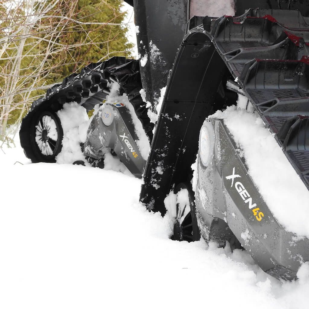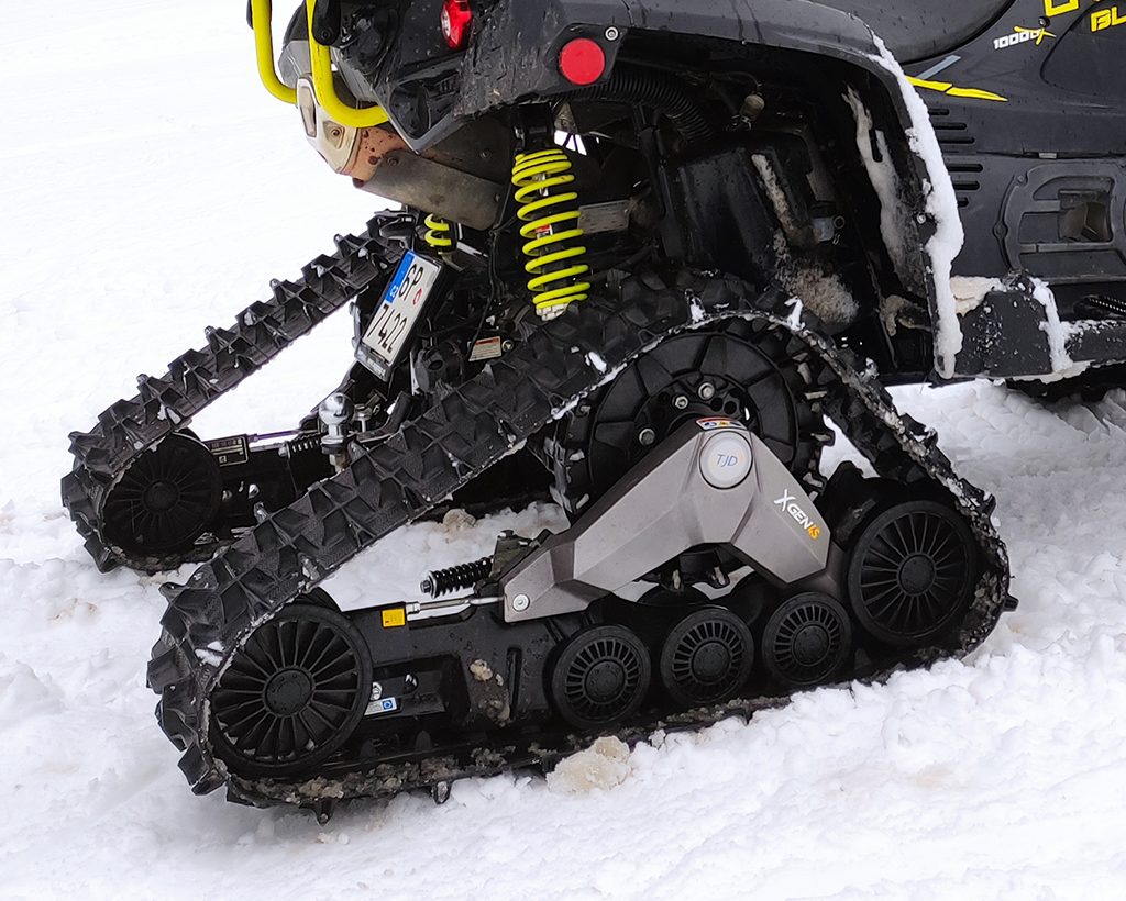Trakce bez kompromisů. Kanadské pásy pro čtyřkolky s pohonem všech kol umožňují skutečně celoroční používání v zimě, na jaře, v létě, na sněhu, v blátě, na šotolině i v písku. Pásy TJD Xgen 4S mají mnoho předností oproti sněžným skútrům, od výrazně nižší pořizovací ceny přes velmi vysokou tažnou sílu až po možnost jezdit i na površích beze sněhu. Snadná montáž namísto kol. Pásy jsou schválené pro provoz na pozemních komunikacích v ČR.