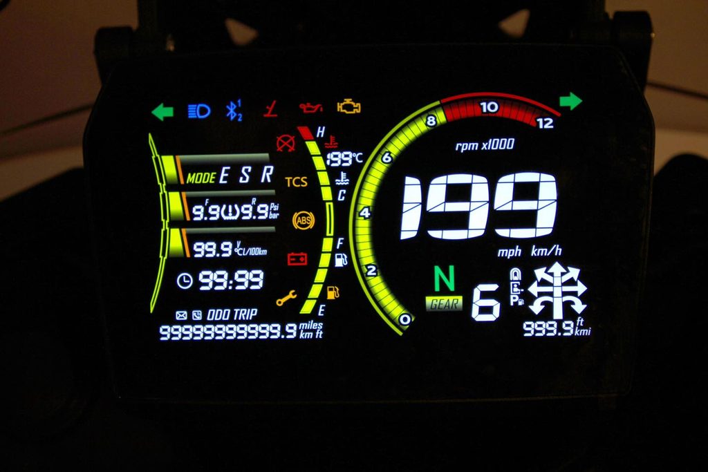 Kromě větší síly a lepšího podvozku mám taky vylepšenej 7palcovej displej. Má vyšší jas, takže na něm všecko krásně uvidíš i za vostrýho slunka. Mobil si snadno spáruješ pomocí blůtůčka. Jen co to uděláš, dostaneš na přístrojovku šipkovou navigaci, díky který nemineš ani tu nejzašitější odbočku. No a 12V zásuvka nebo USB konektor? Jasněže voboje!