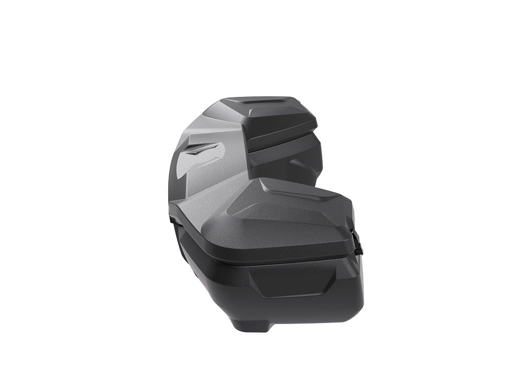 Box je velmi prostorný. Jeho objem je 115 litrů a lze do něj bez problému vložit dvě přilby. Také ho lze dodatečně vybavit kanystrem o objemu 10 litrů, který je připevněn k jeho víku a dokonale zapadá do designu čtyřkolky. O bezpečnost ulžených věcí v boxu se postarají dva zámky, které uzamkneš klíči. Gumové těsnění víka zase pohlídá obsah před vodou a prachem i v těch nejnáročnějších podmínkách.